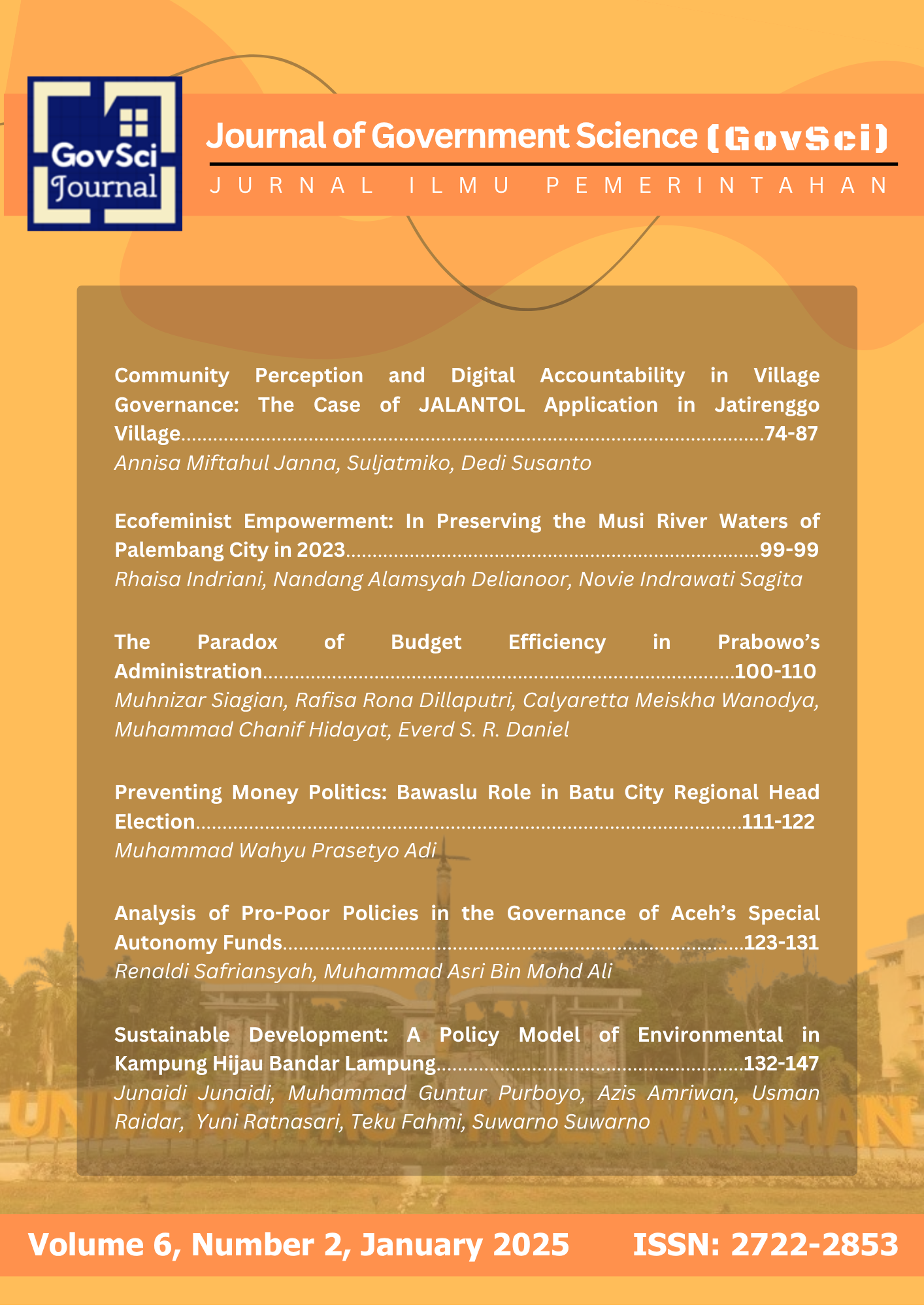 Journal of Government Science (GovSci) : Jurnal Ilmu Pemerintahan. ISSN: 2722-2853